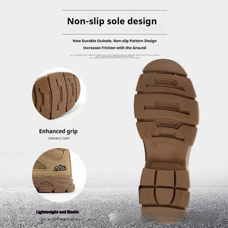 Product information: Color: Brown Sole material: PU rubber sole Type: Anti smashing and anti-static Upper style: high top Closing method: Front tie strap